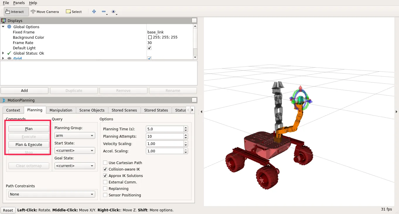 Click on Plan to see Motion visualization and then Execute or just click on Plan and Execute